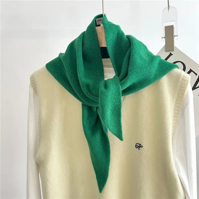 Pure Color Wool Blend Knit Triangle Scarf, kelly green