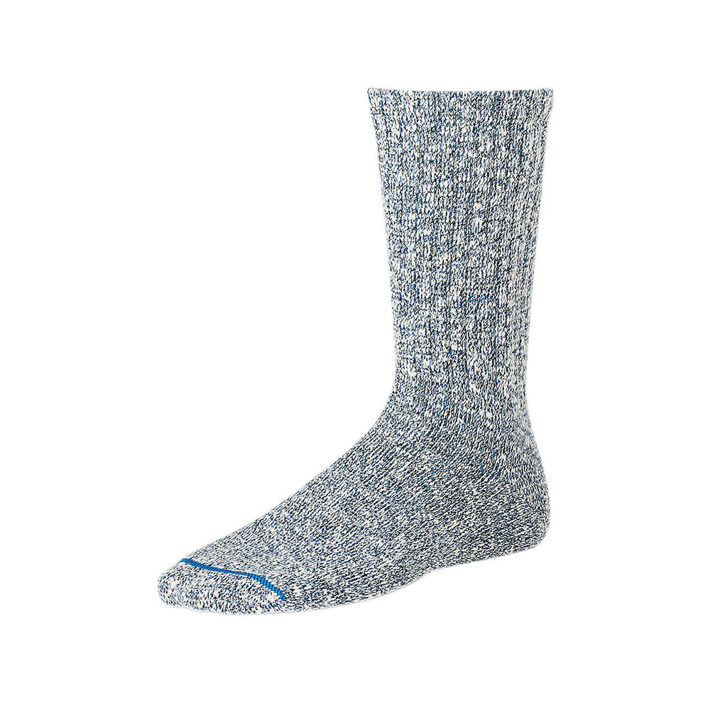 The Cotton Ragg Crew uses a Ragg yarn twisting technique that is defined by using one dyed yarn and one undyed yarn to get a knitted finished "marled" appearance. This is a flat knit sock with a flat knit tow seam that sits closer to the foot and can be worn throughout all seasons.