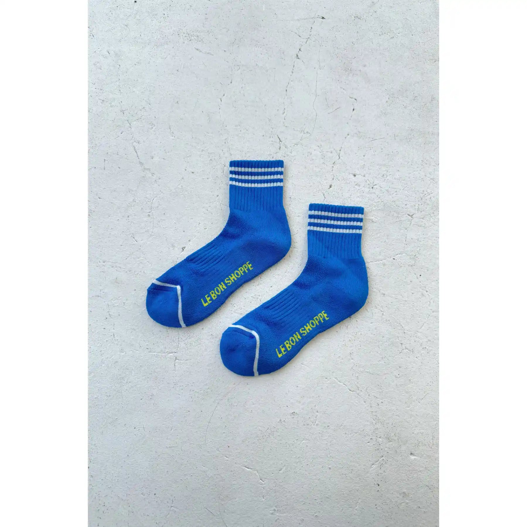 Le Bon loved their Boyfriend Socks so much they decided she needed a sister, the Girlfriend Socks is the cool crew version of their original bestseller and classic Boyfriend Socks. These beauties feature a triple contrast stripe at the opening and a shorter classic crew sock length. She is a universally quintessential sock and especially flattering for our petite ladies.