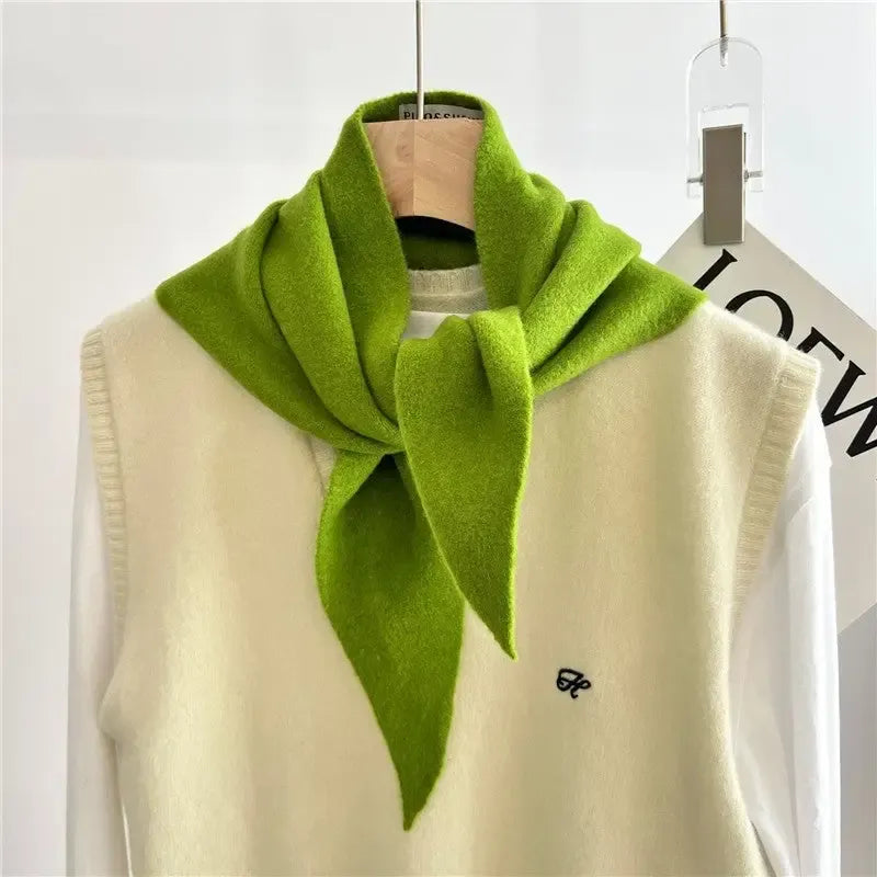 Pure Color Wool Blend Knit Triangle Scarf, Pistachio.