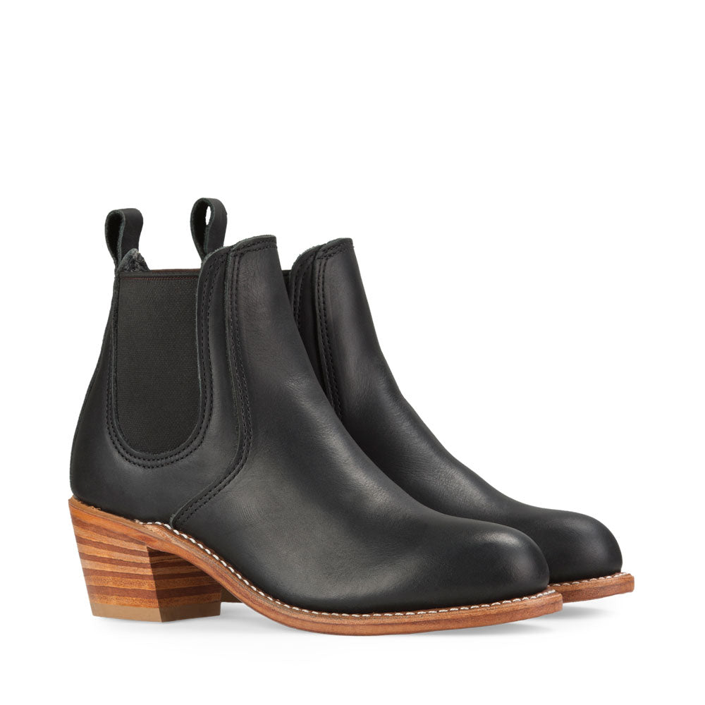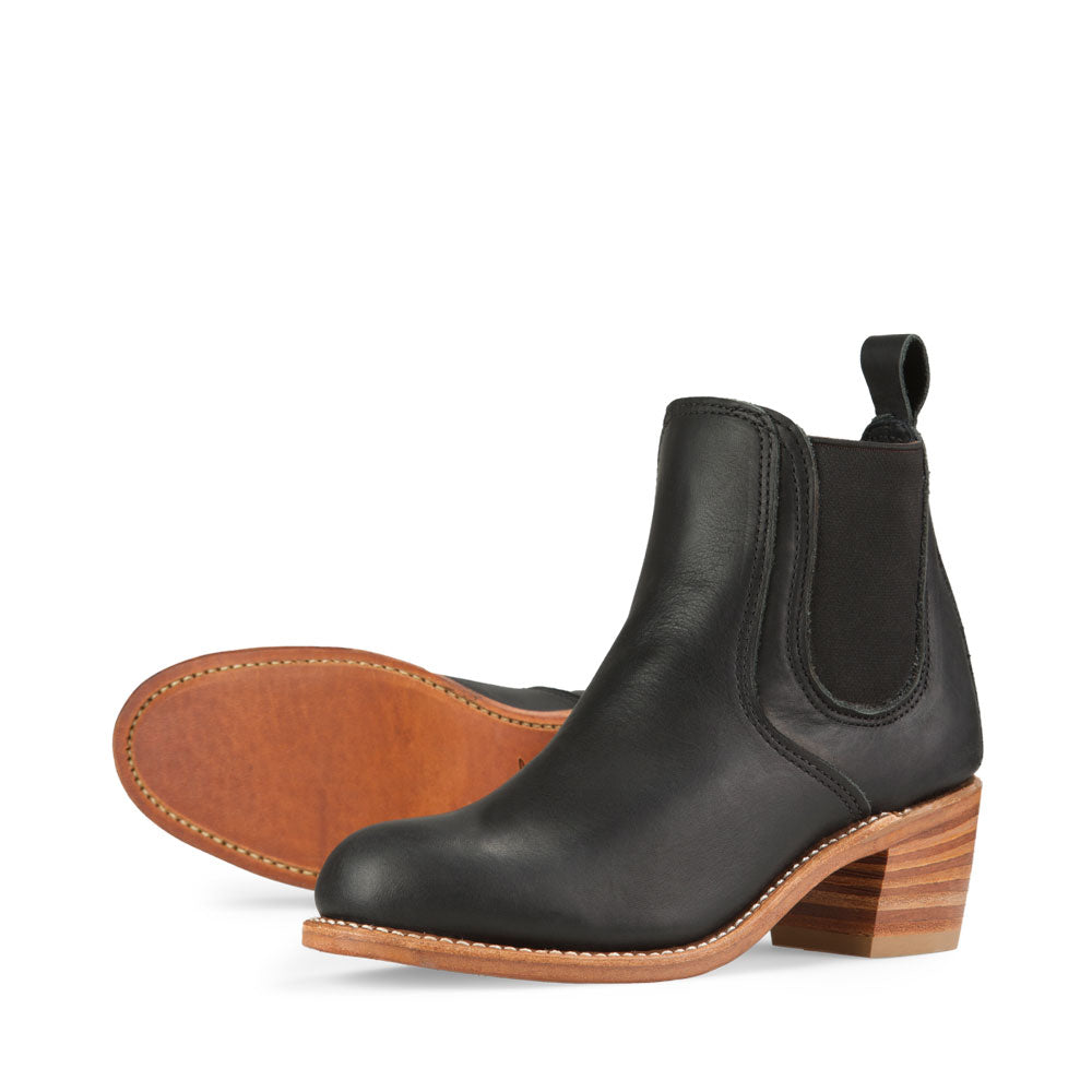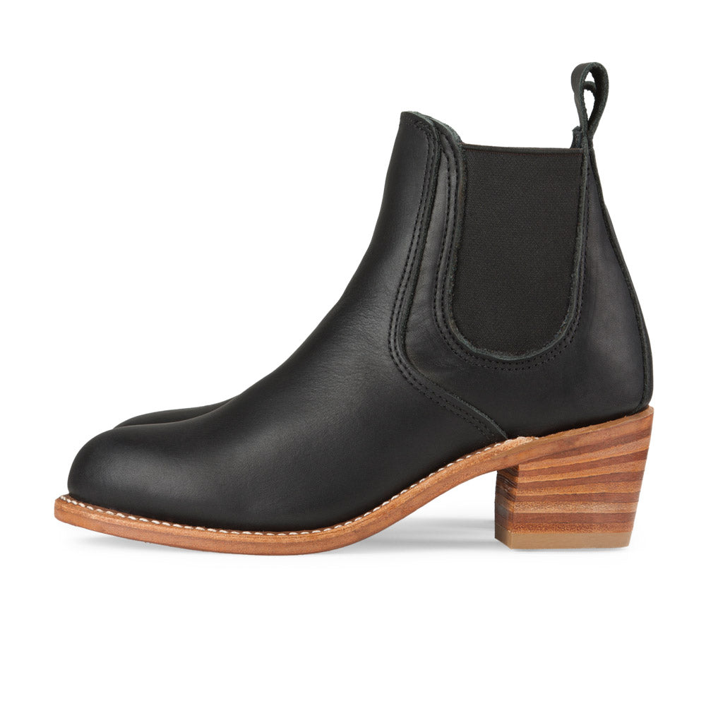 This modern take on the classic Chelsea boot, with a genuine leather-stacked heel and a three-quarter Goodyear welt, showcases premium, Red Wing Black Boundary leather.