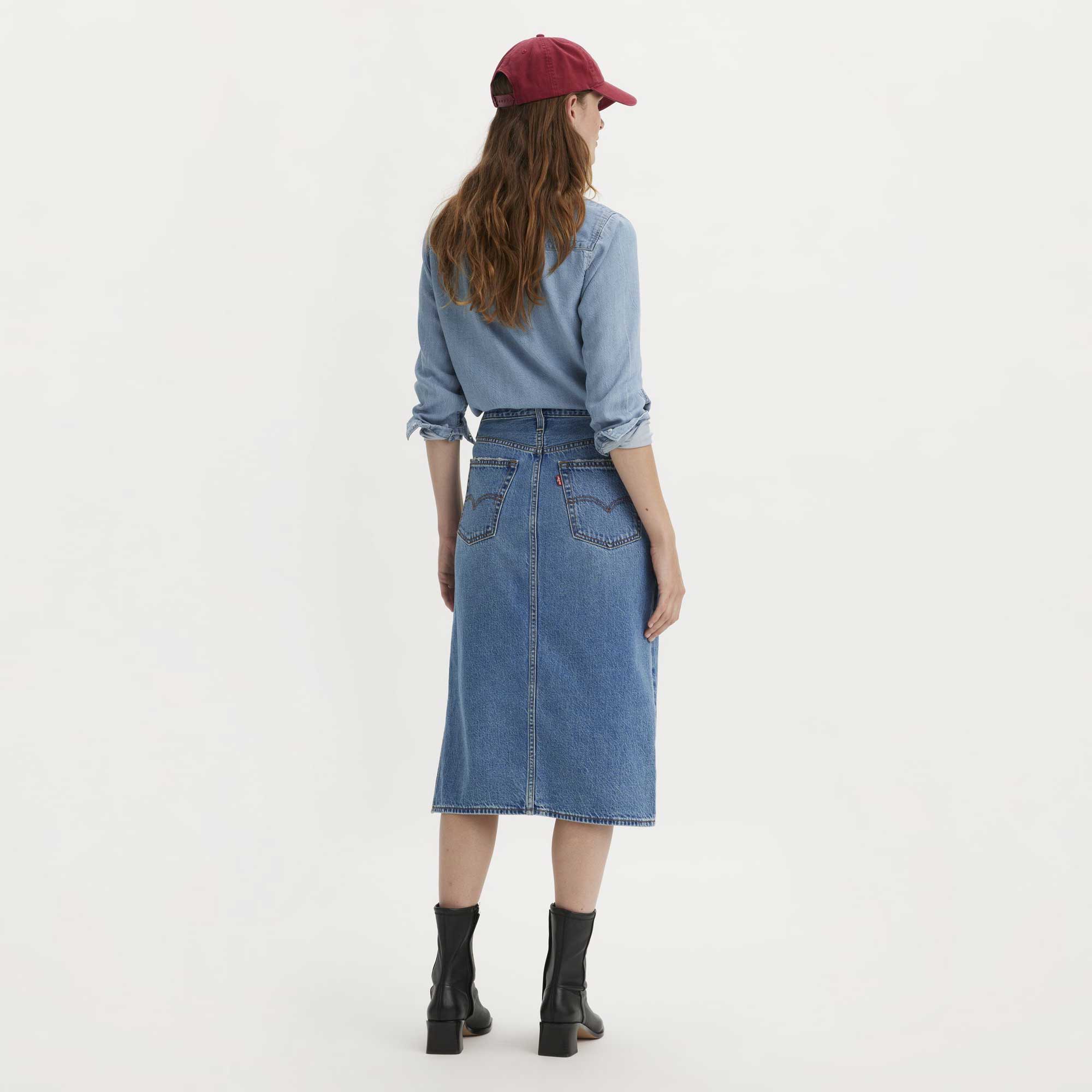 ‘90s-inspired midi denim skirt