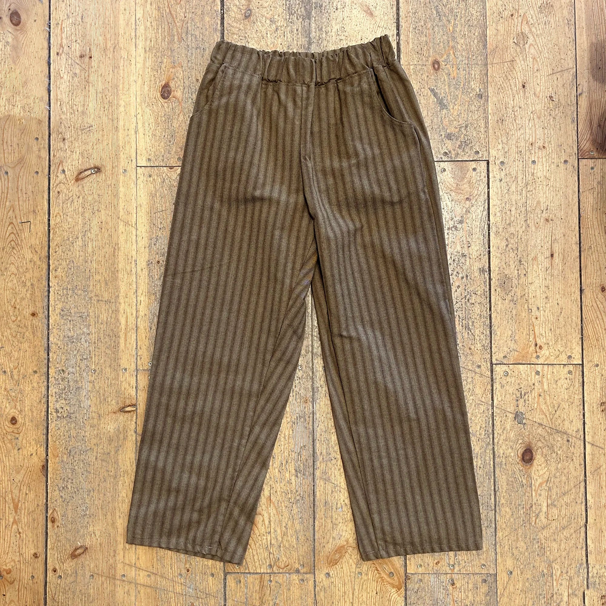 Mia Pants, Woven Brown Stripe.