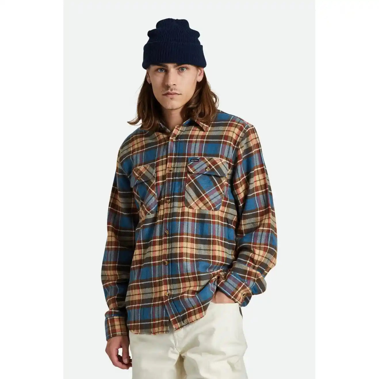 Brixton Bowery Long Sleeve Flannel, ocean blue/palm desert/sand