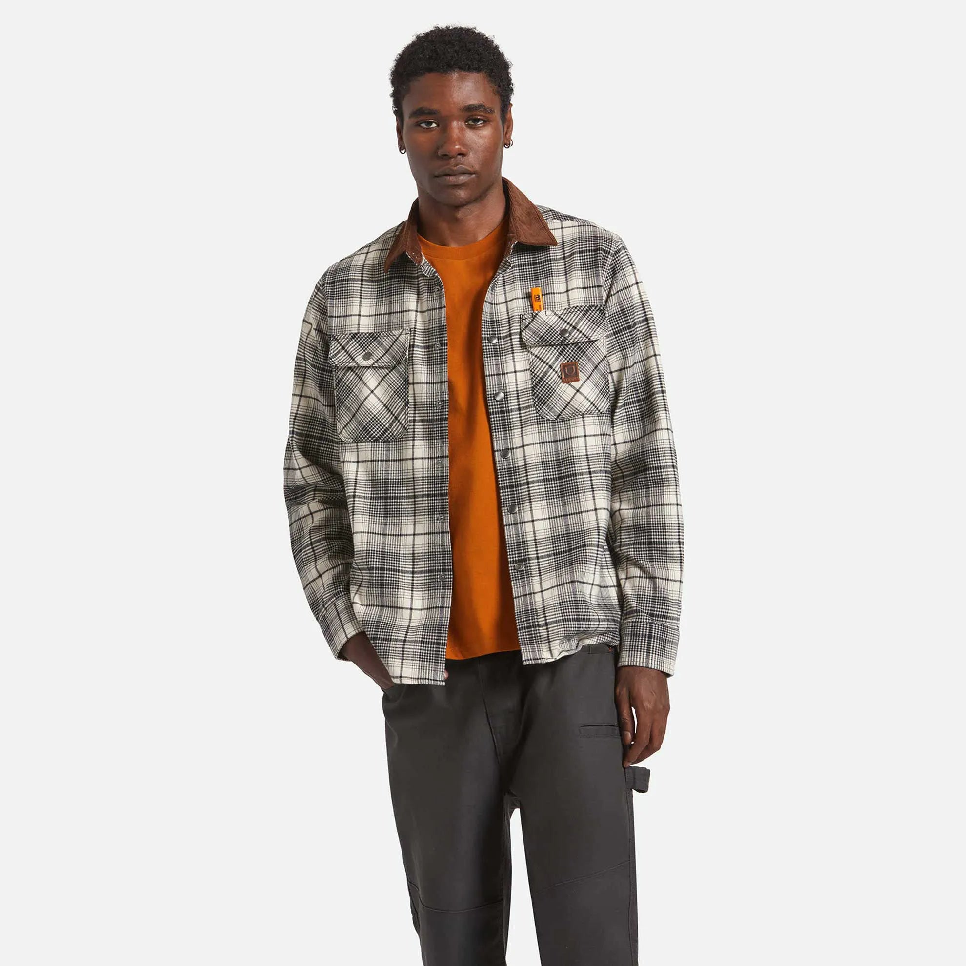 Brixton Builders Bowery Perf Flannel, off white/black