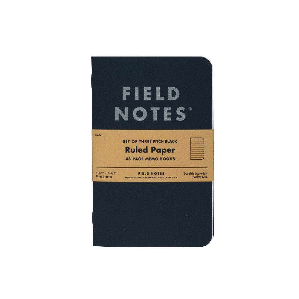 Field Notes Pitch Black 3-Pack Ruled Paper Notebooks