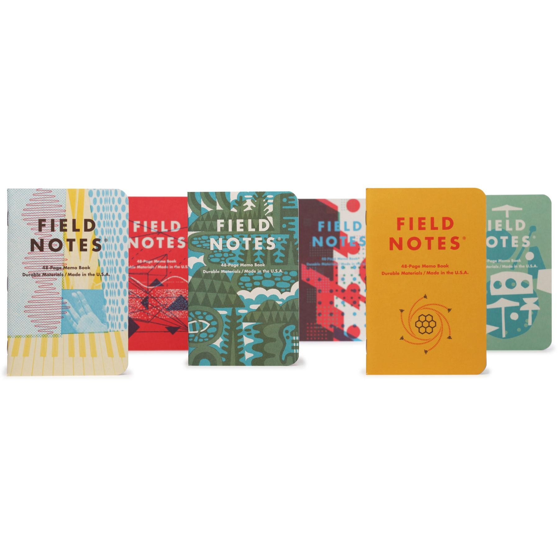 This “Wilco × Field Notes” Box Set is the result. The box contains six Memo Books reflecting the craft and talent of the artists and the passions and personalities of the musicians. Field Notes co-founder Aaron Draplin recruited the artists and oversaw the process. Read Aaron’s account of the project in our latest Dispatch, “Backstage.”