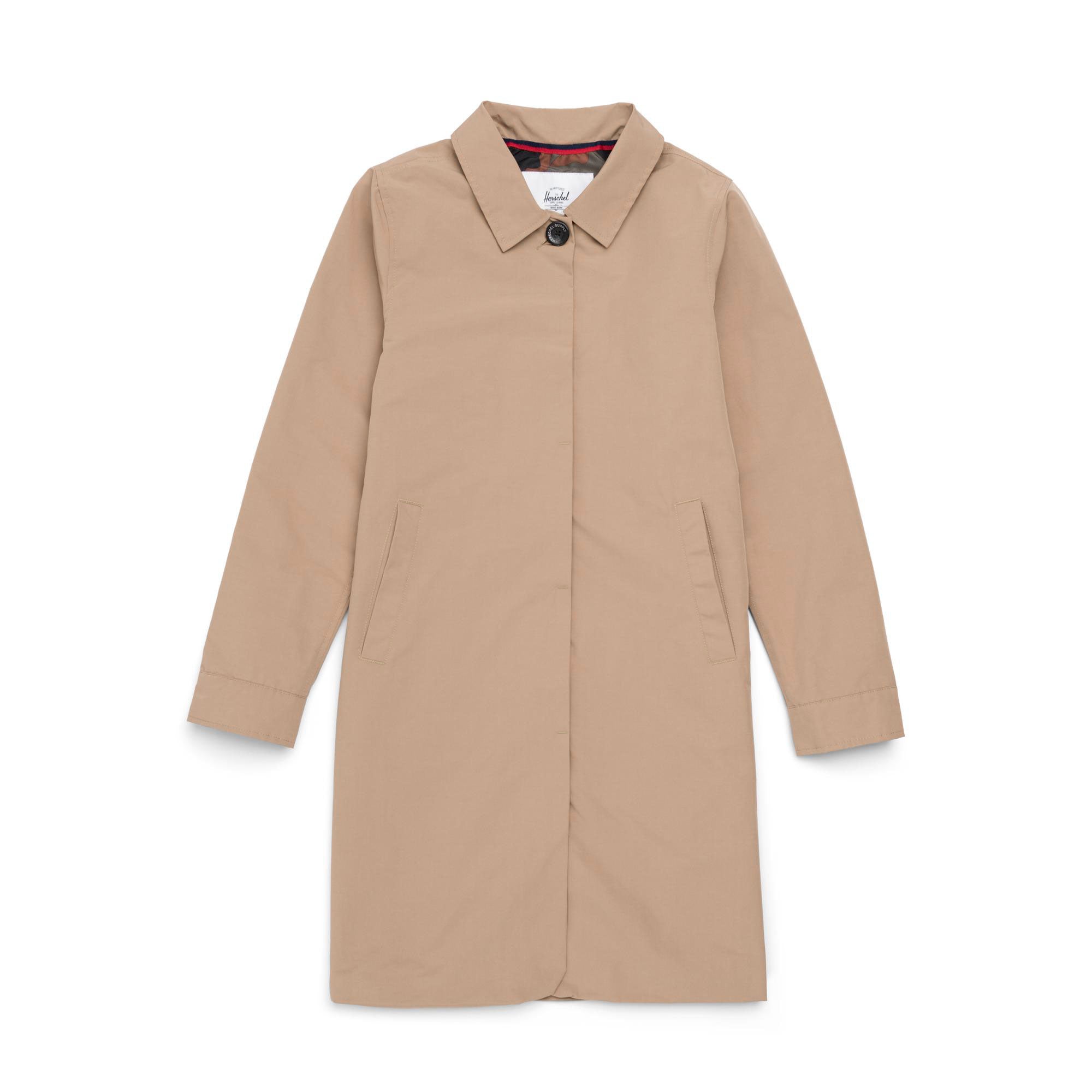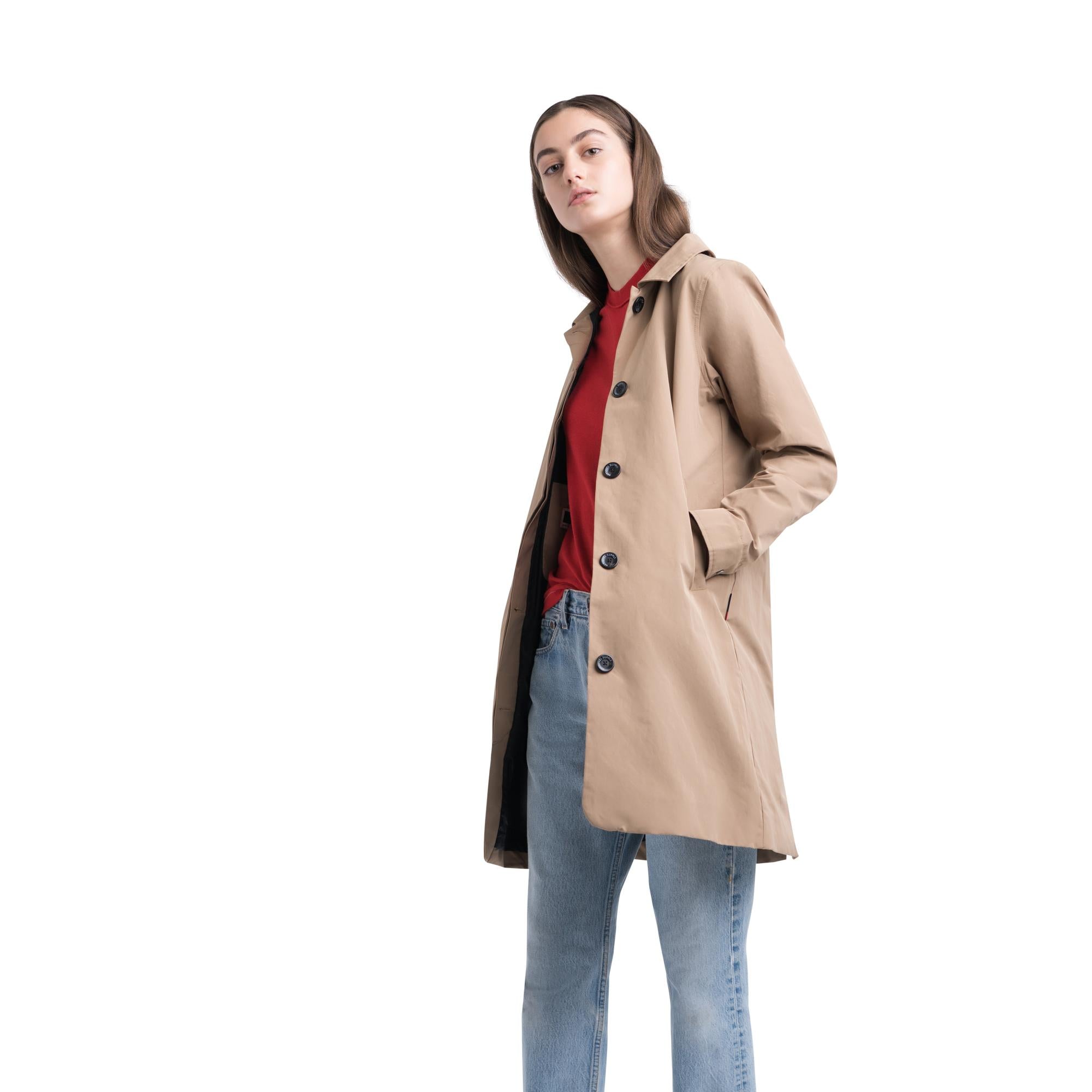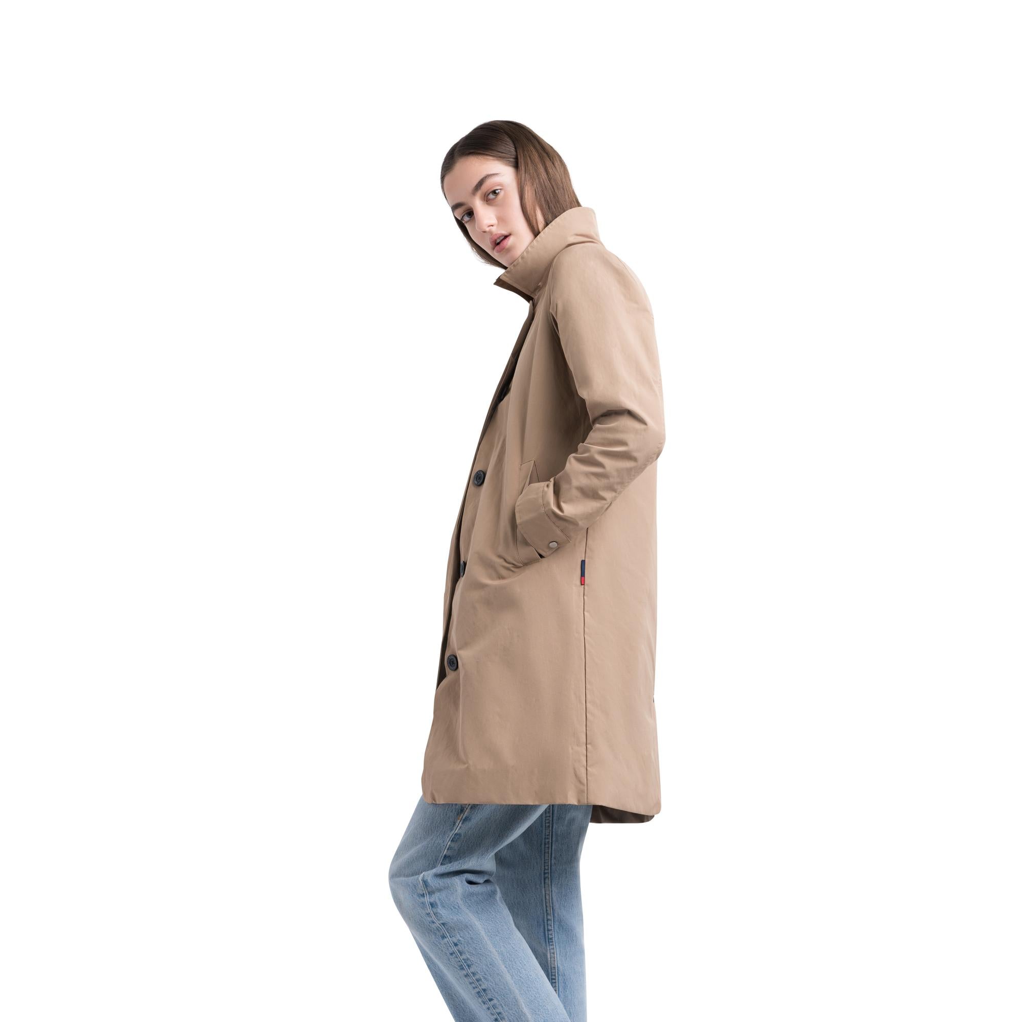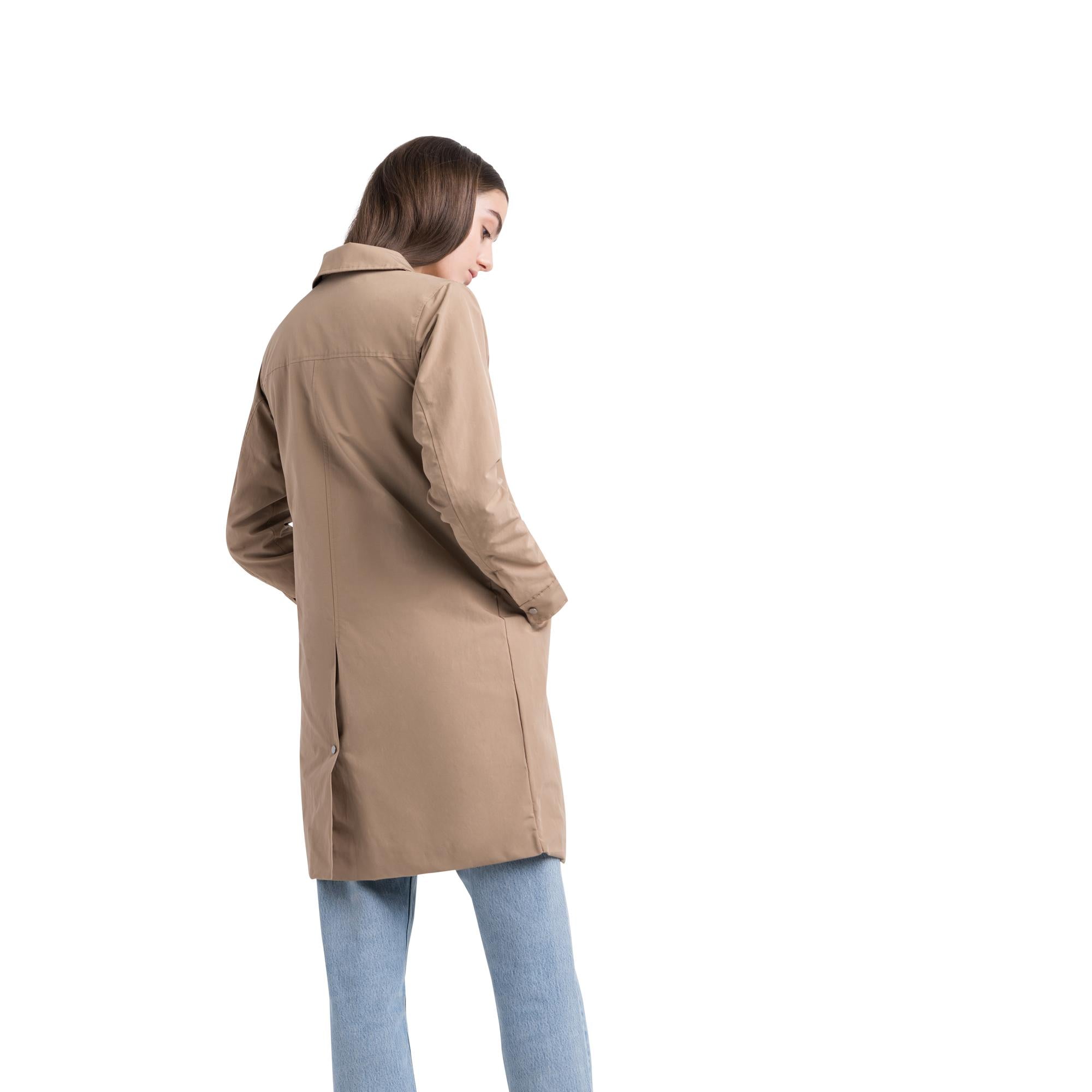 A contemporary interpretation of a timeless style, the sophisticated Women's Mac coat blends practical utility with a comfortable fabric blend. Renowned as traditional British military attire, this elongated silhouette offers refined details such as a concealed synthetic horn button closure.
