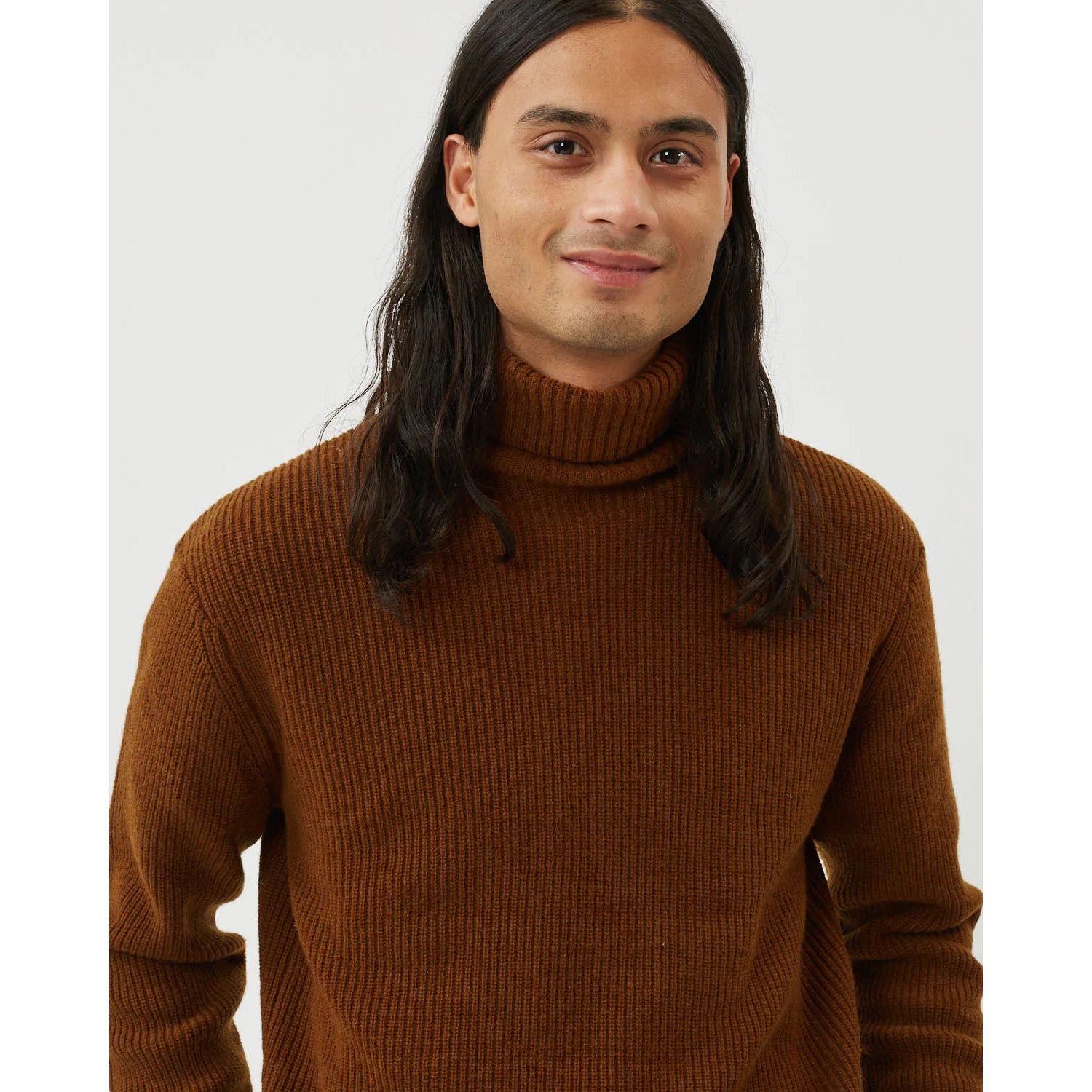 Hargreaves 2.0 7349 is a long-sleeved knit with turtleneck. It is crafted from a warm wool and nylon blend and has a slightly melange look. The knit has a casual fit and features rib edges. The model is 187 cm tall and wears a size large.