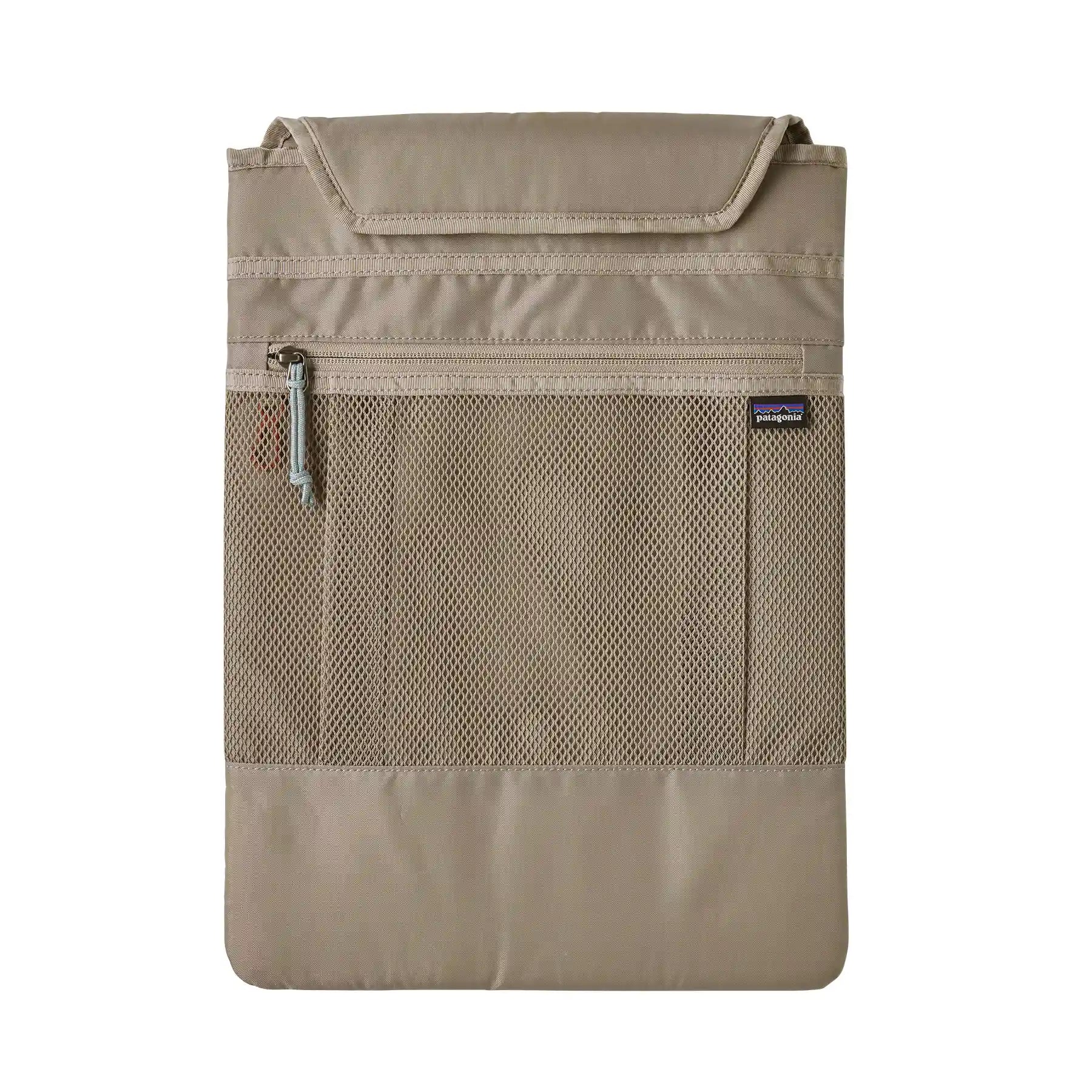Removable padded sleeve fits laptops up to 15" and has a secure zippered pocket to hold pens, cords and other desktop items to ease transitions from work to play