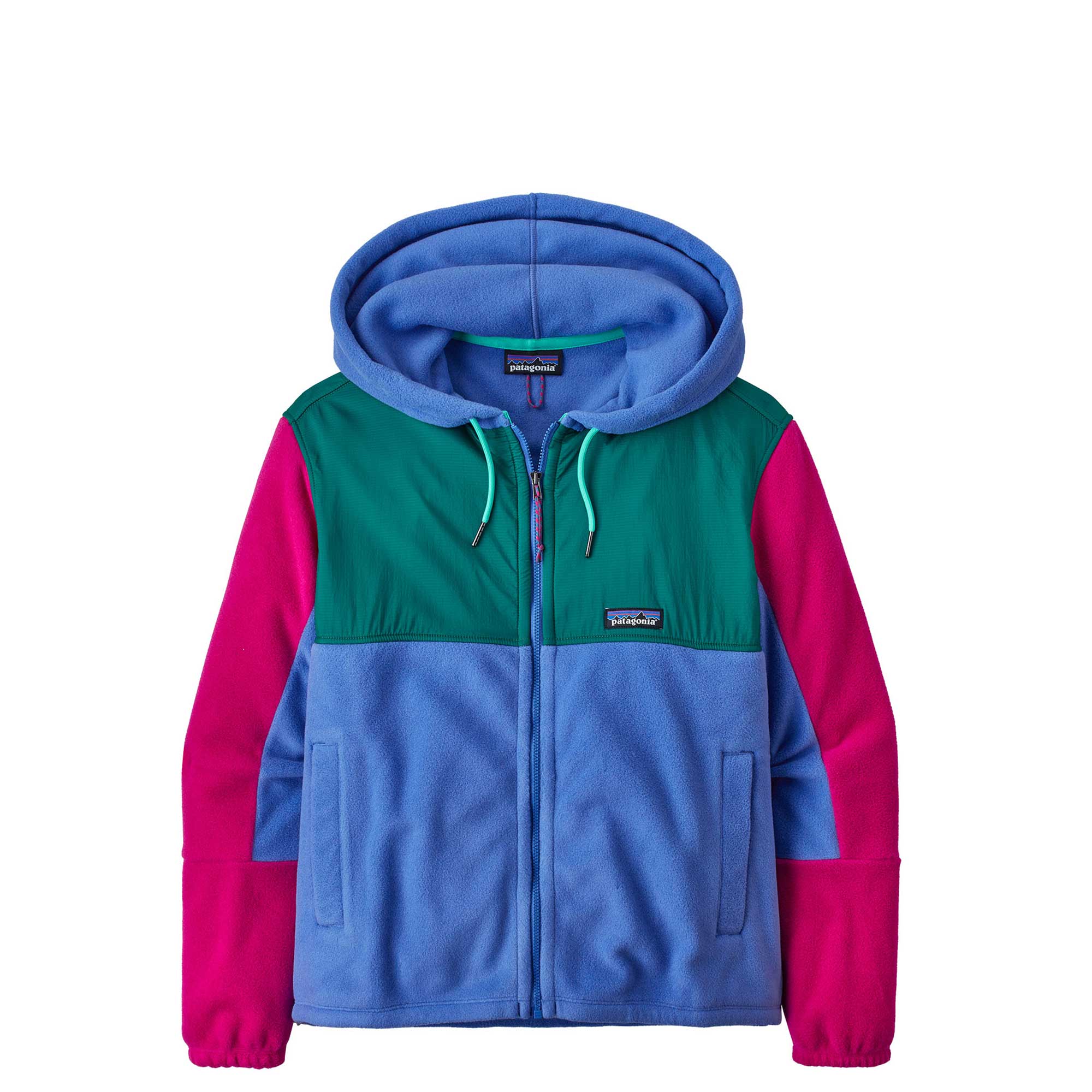 Full-zip fleece hoody with recycled nylon from the Houdini family overlayed on the yoke for added wind protection, durability and warmth
