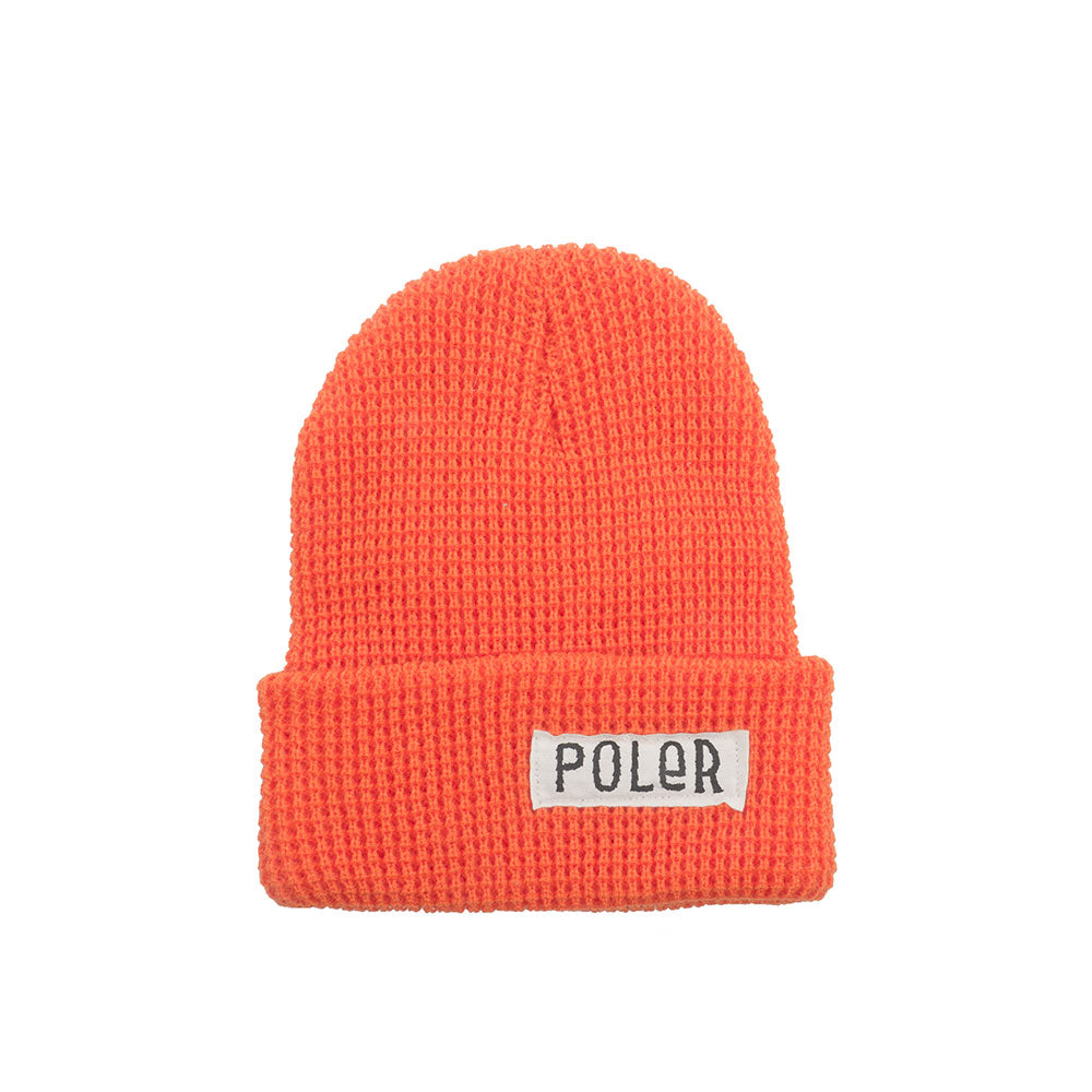 Poler Tube Workerman Beanie, Athletic Orange. 100% Acrylic. Made in the USA.