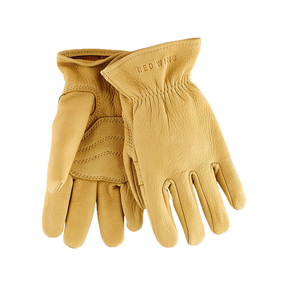 Our Buckskin Unlined Leather Gloves are crafted with 3.25 oz. Chrome Tanned Deerskin Leather and tanned in a similar style as our Red Wing Heritage Leathers. They are designed for maximum comfort and mobility using the Gunn Cut Palm Pattern and Key Stone Thumb assembly. Features include a double layer of leather, with multiple lines of stitching to reinforce areas of major wear. Note: We recommend purchasing the gloves slightly snug, as the Chrome Tanned Leather will stretch slightly to create the perfect fit over time. Comes in four sizes: S, M, L, XL