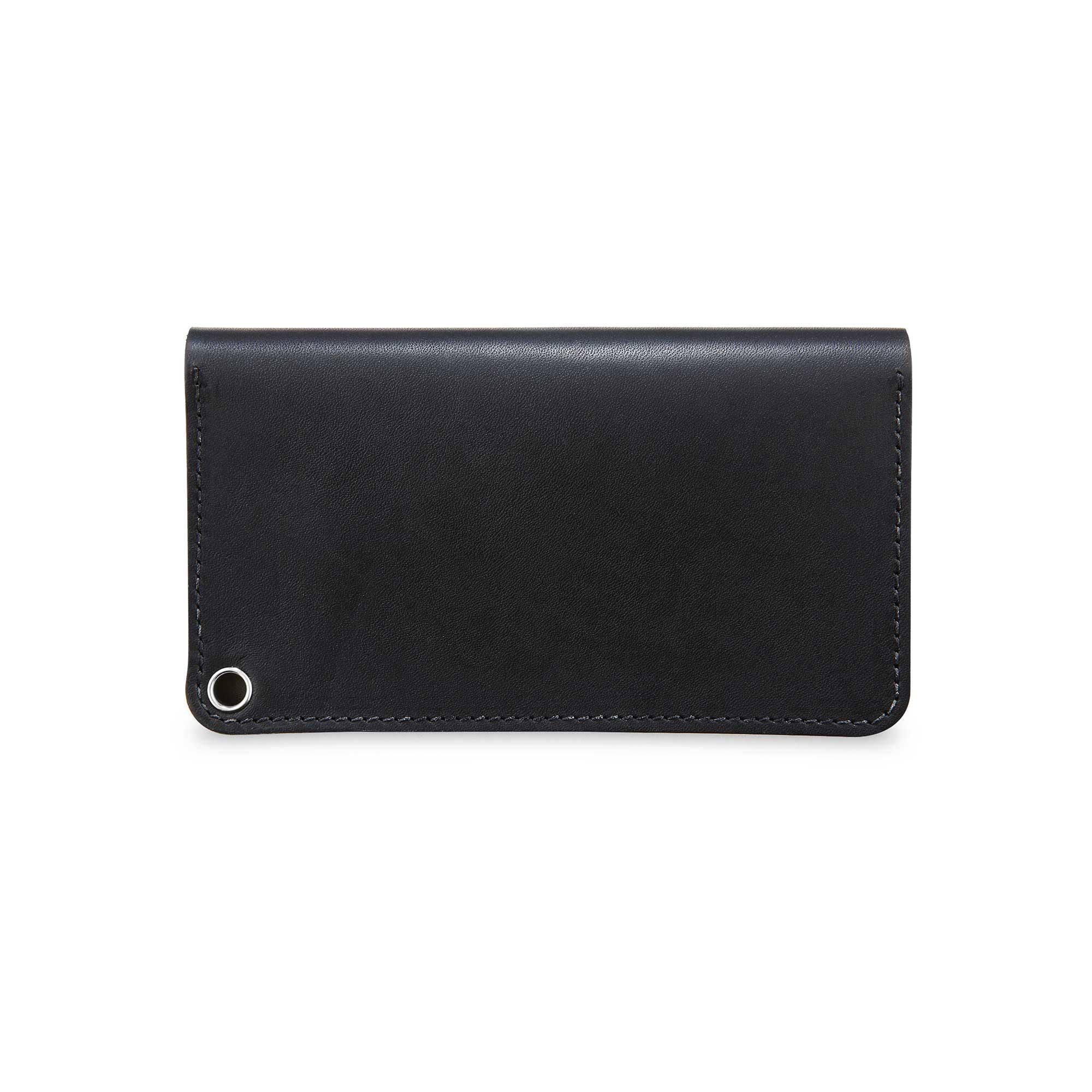 Built for the long haul, whether that’s a road trip or hopping a transatlantic redeye. With a bill slot sized for international currencies and a zipper pouch for coins, the trucker snaps shut with a pair of brass buttons and can be secured to your belt with a matching leather lanyard, thanks to its corner eyelet.
