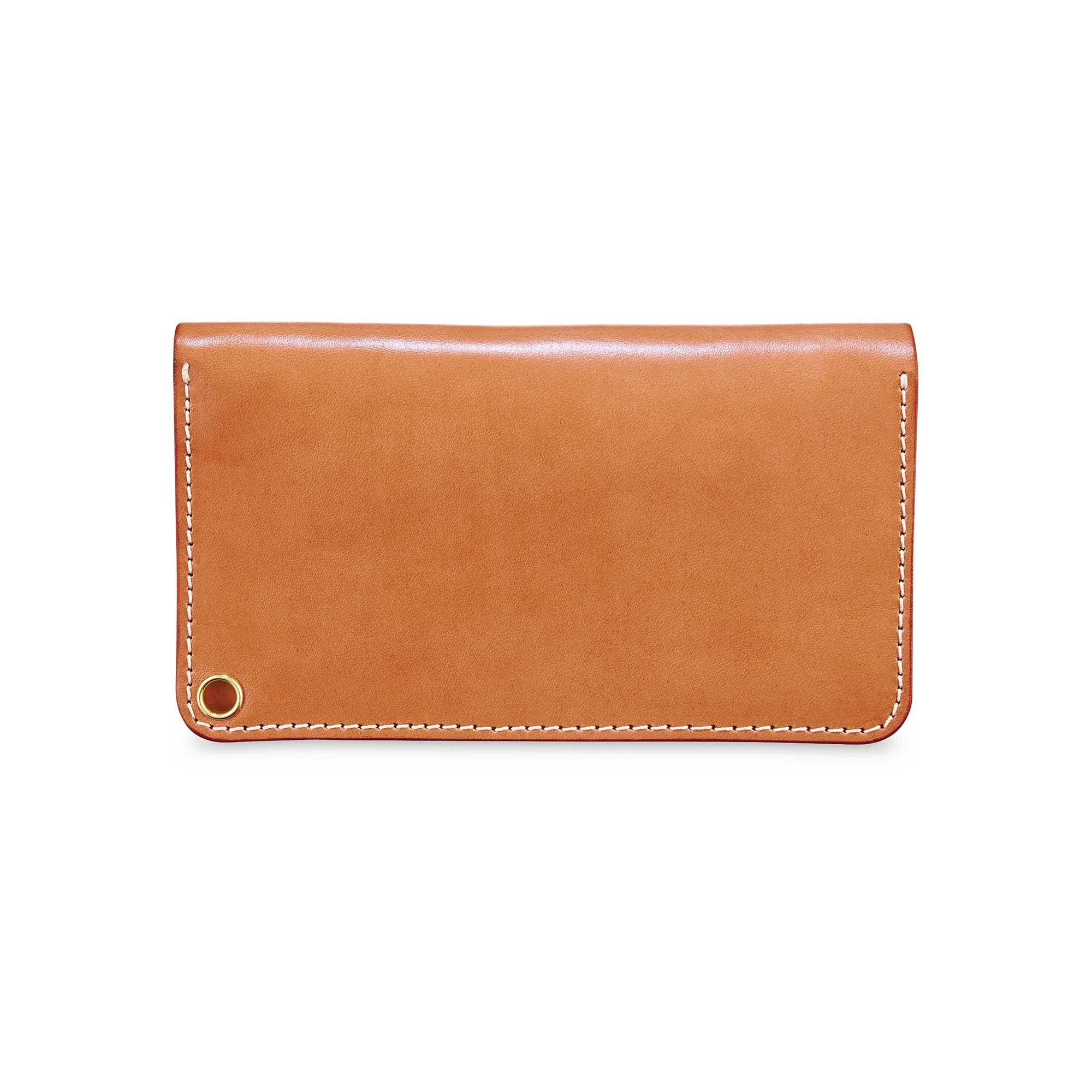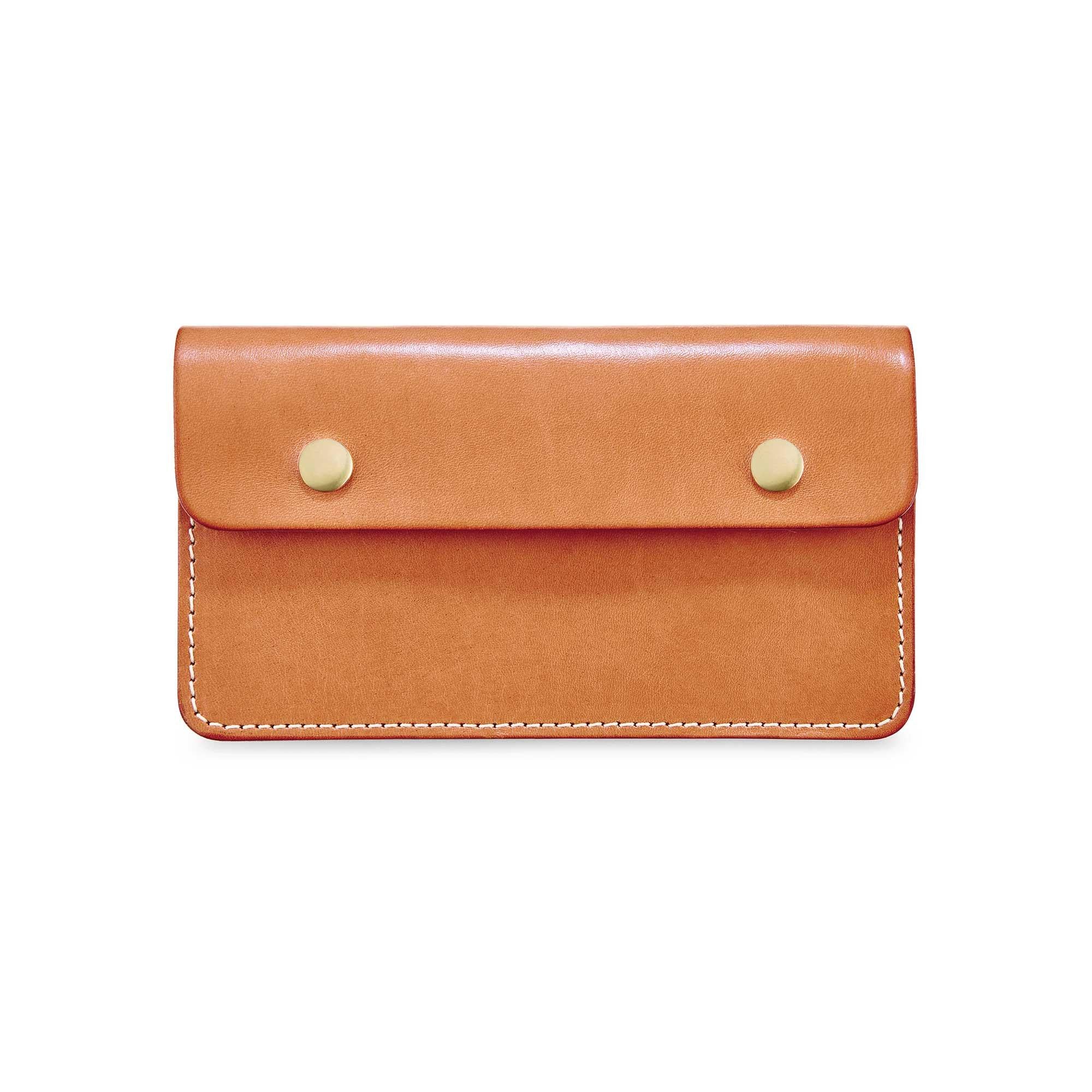 Built for the long haul, whether that’s a road trip or hopping a transatlantic redeye. With a bill slot sized for international currencies and a zipper pouch for coins, the trucker snaps shut with a pair of brass buttons and can be secured to your belt with a matching leather lanyard, thanks to its corner eyelet.