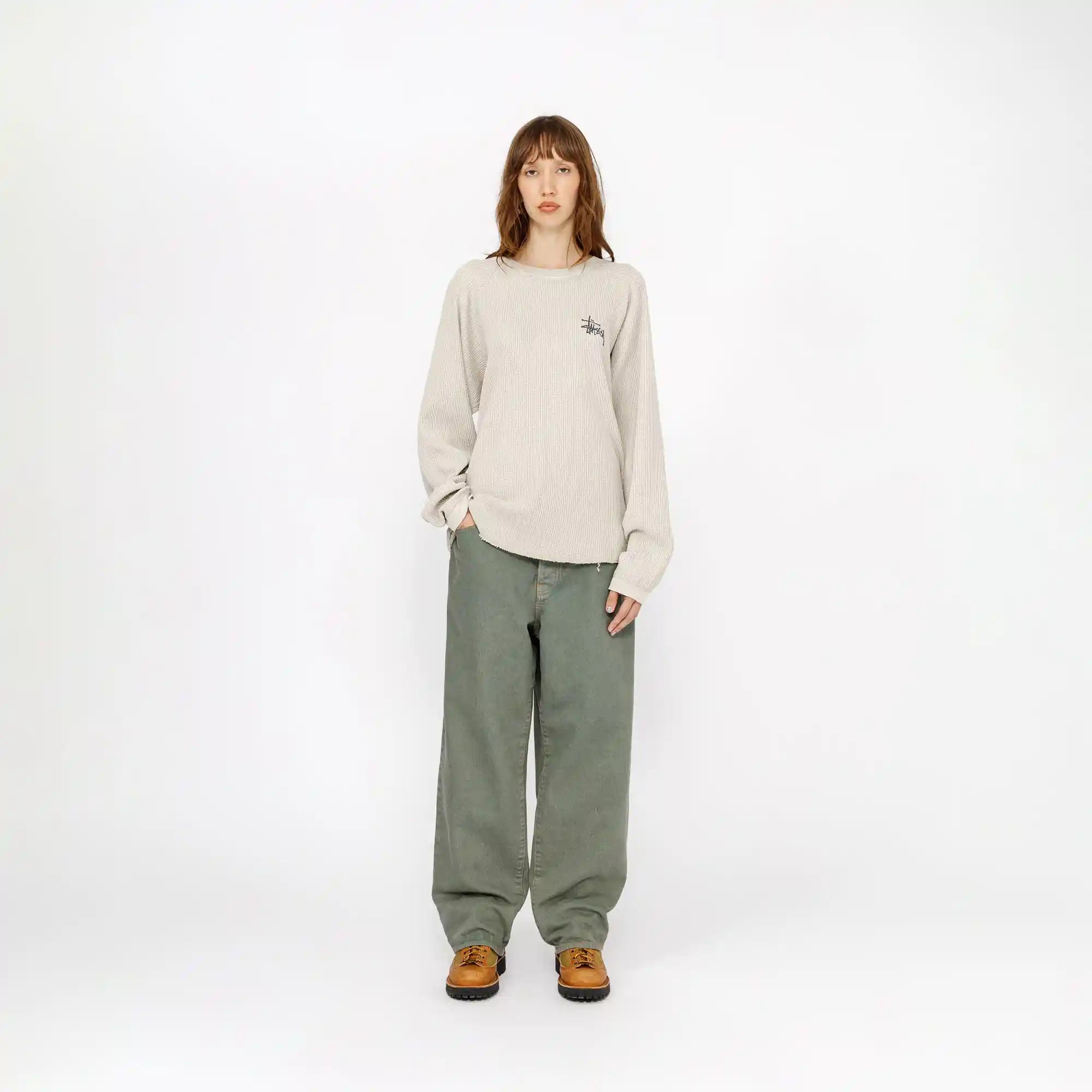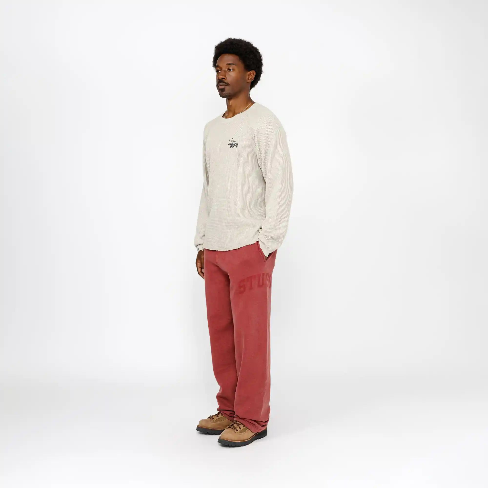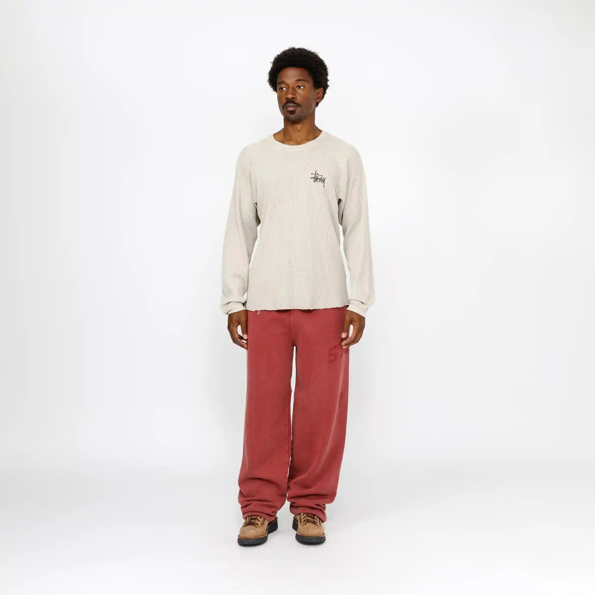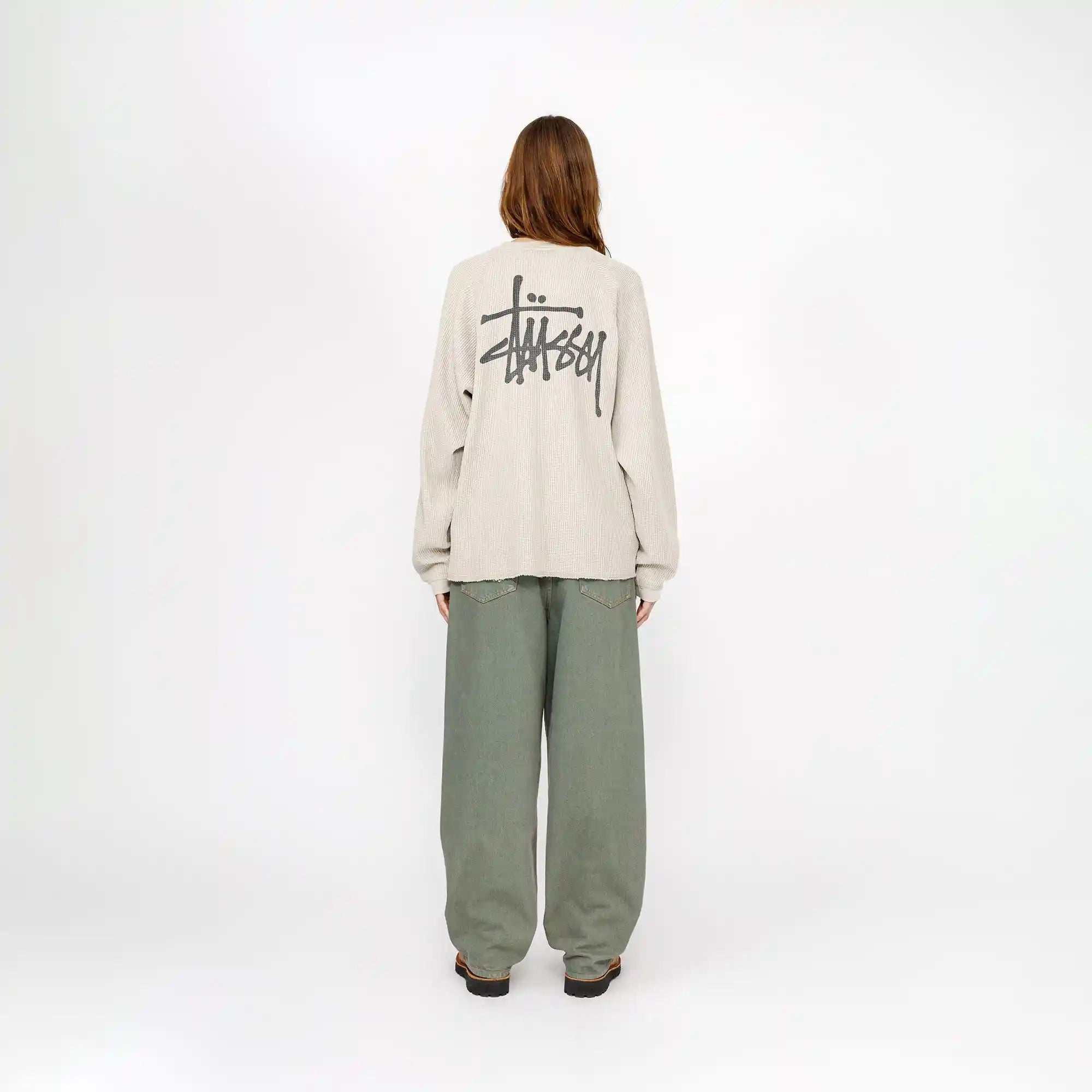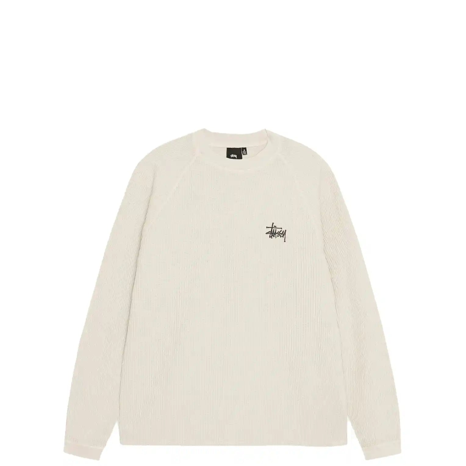 Relaxed thermal tee in acid wash waffle knit cotton. Stüssy basic stock logo printed at the left chest and across the back.
