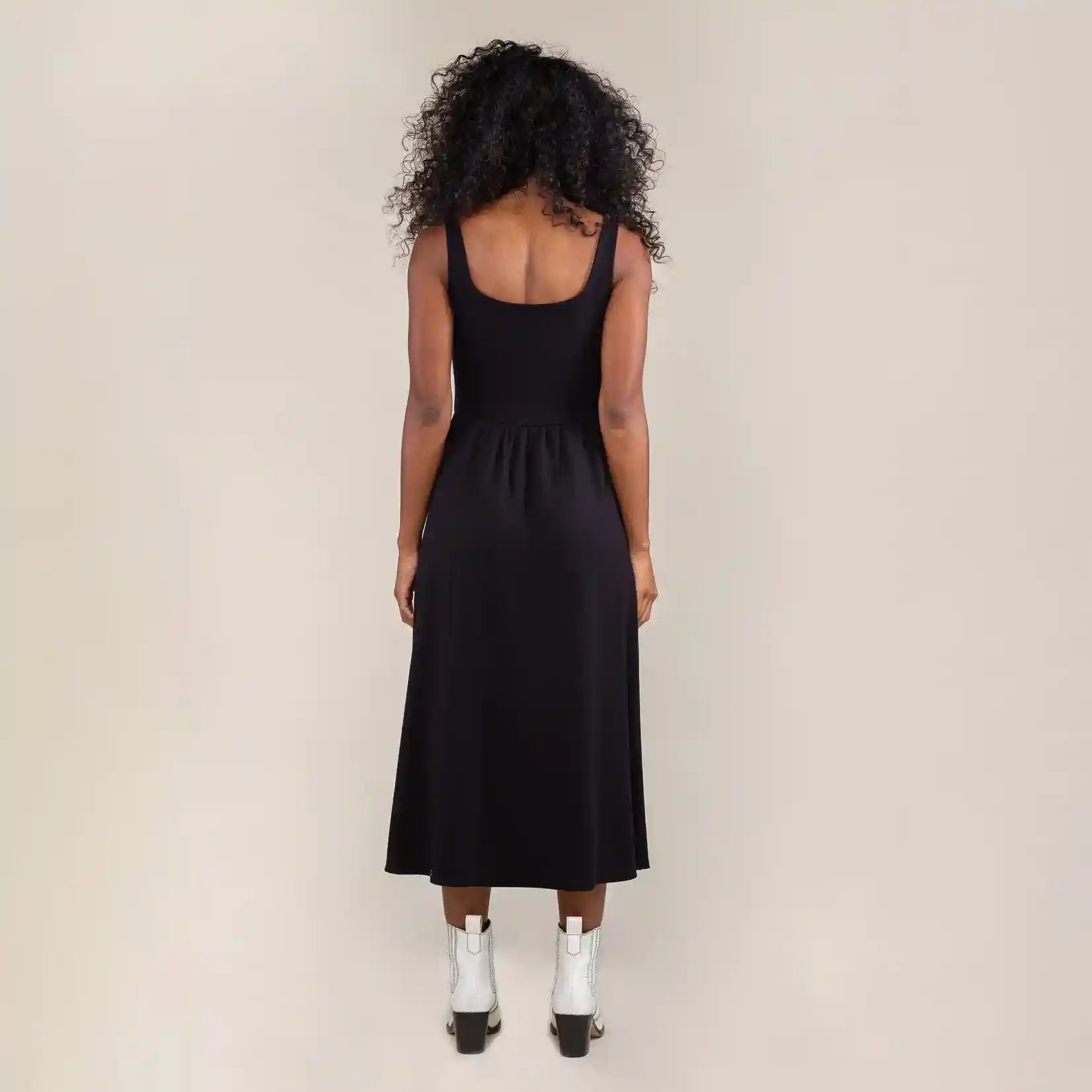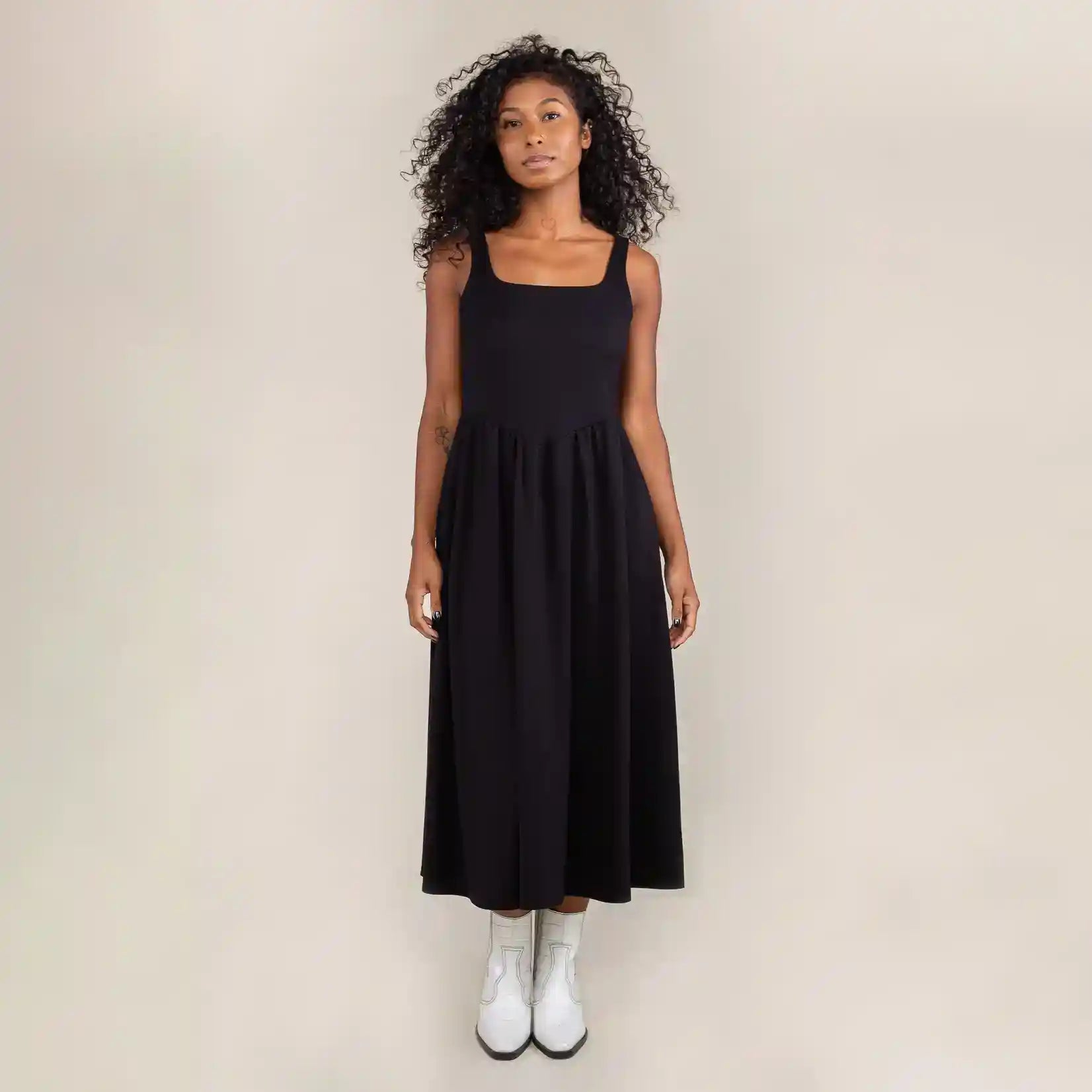 Ultra Luxe Jersey heavy knit square neck swing dress with centre front dip waist. Made from Ultra Luxe Jersey - it's buttery soft feel, stretchy, and not see through. Features a flattering square neck line.