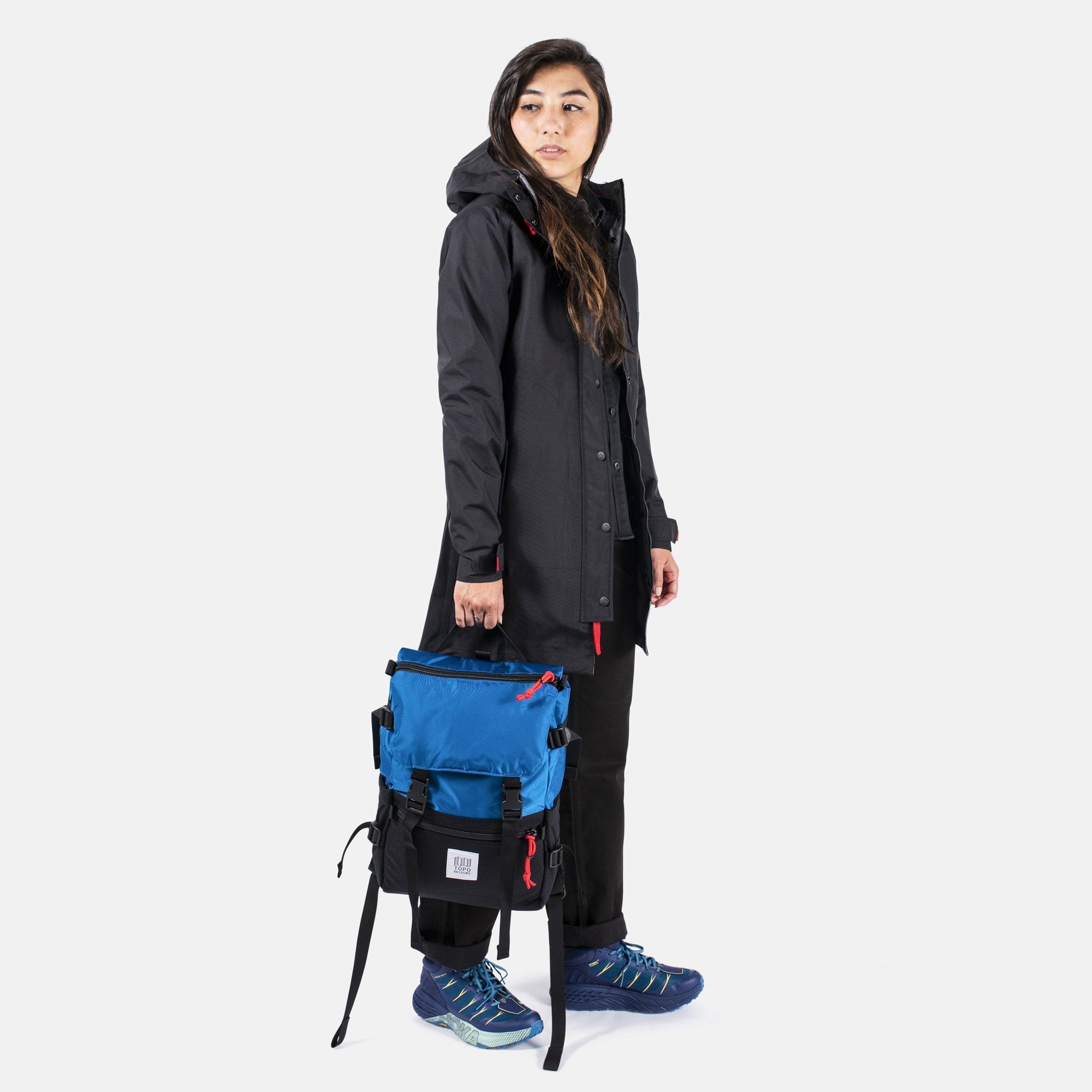 The bag that put Topo on the map. The Rover Pack Classic has a tough 1000D nylon base and lightweight, water-resistant pack cloth upper with a cinch top closure. An exterior front pocket and top flap pocket give quick access to smaller items and internal laptop sleeve keeps your computer secure. Expandable side pockets hold your water bottle or extra gear.